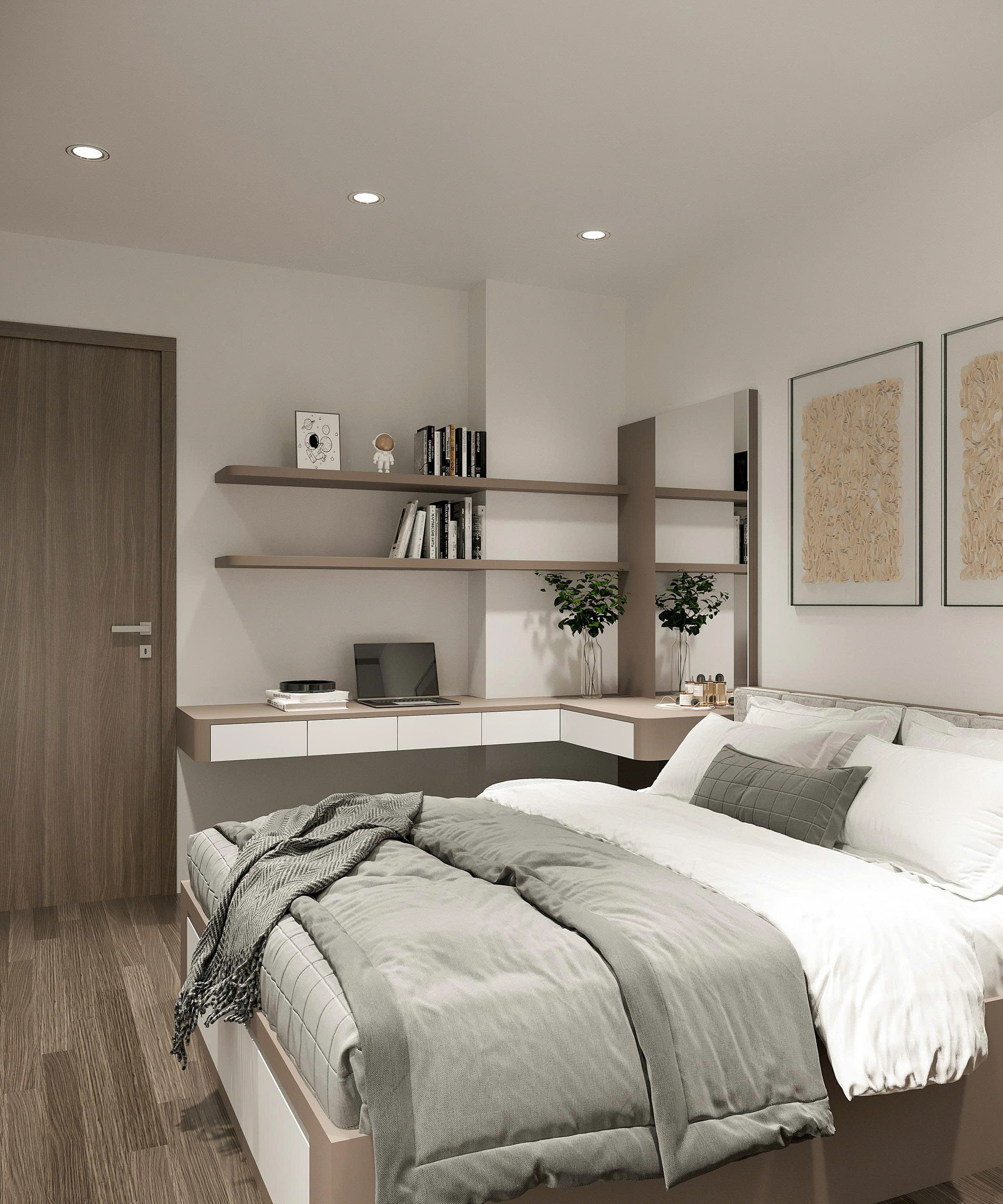 Phòng ngủ dễ thương , tone màu sáng đẹp, hài hoà, tôi rất ưng